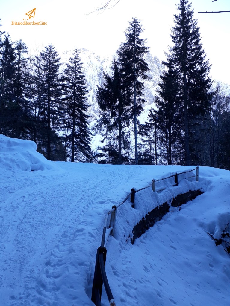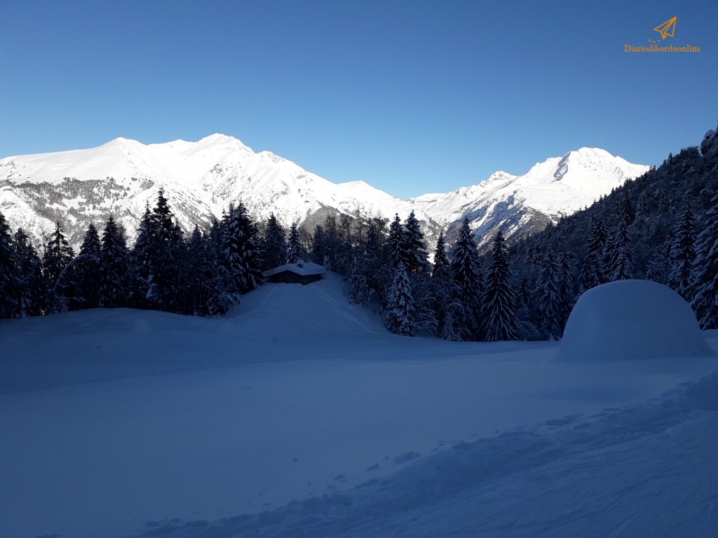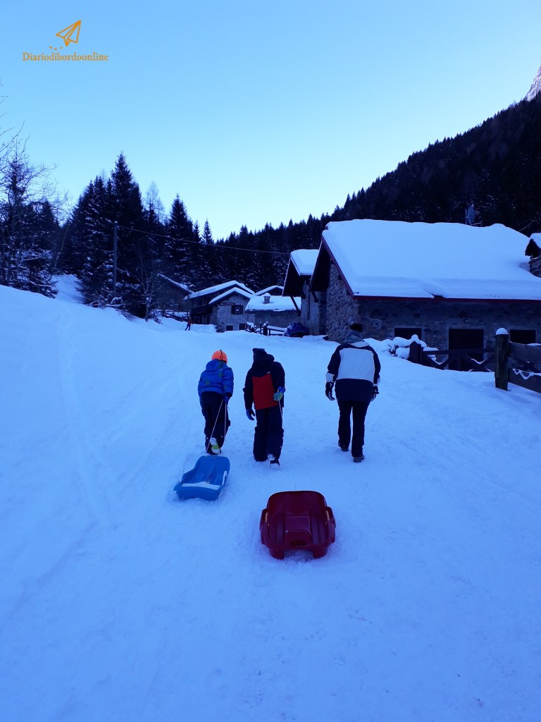 Lasciamo per ultimo ma solo per il fatto di essere il più lontano, il percorso che preferiamo in assoluto, situato in Val di Scalve che si raggiunge rapidamente superando il Passo della Presolana e seguendo la Via Mala sino al paese di Schilpario. Raggiunta la località Fondi si trova un parcheggio a pagamento dove lasciare l’ automobile e da qui lungo il tracciato della strada che porta al Passo del Vivione (chiusa nei mesi invernali) si cammina sino alla Conca dei Campelli e all’ omonimo Passo posto a circa 1.900 metri di quota. Lungo il percorso potete trovare ristoro presso il Rifugio Bagozza che, situato a 1.500 metri di quota, è sempre aperto ed offre ristoro a tutti gli appassionati di montagna. La conca dei Campelli è una zona che non ha nulla da invidiare alle Dolomiti con le vette innevate del Pizzo Camino e del Cimon della Bagozza. Generalmente a queste altitudini gli accumuli nevosi superano i 2 metri per cui è spettacolare la vista delle varie malghe il cui tetto spunta a malapena dal manto nevoso. Il percorso sebbene di facile pendenza è molto lungo e se percorso sino al Passo richiede più di 2 ore e mezza di cammino. Dopo un pranzo ristoratore a base di “polenta e chel che ghè” un’ idea simpatica è quella di ridiscendere a valle a bordo di una slitta o di un bob.