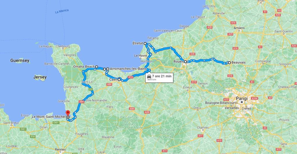 Partendo dall’aeroporto di Parigi Beauvais, situato 80 km a nord di Parigi, con l’automobile noleggiata e dopo una breve sosta in città per visitare la bella Cattedrale di San Pietro, ci siamo diretti a Ovest in direzione di Rouen, lungo strade secondarie spesso rallentate dal lento procedere di mezzi agricoli.