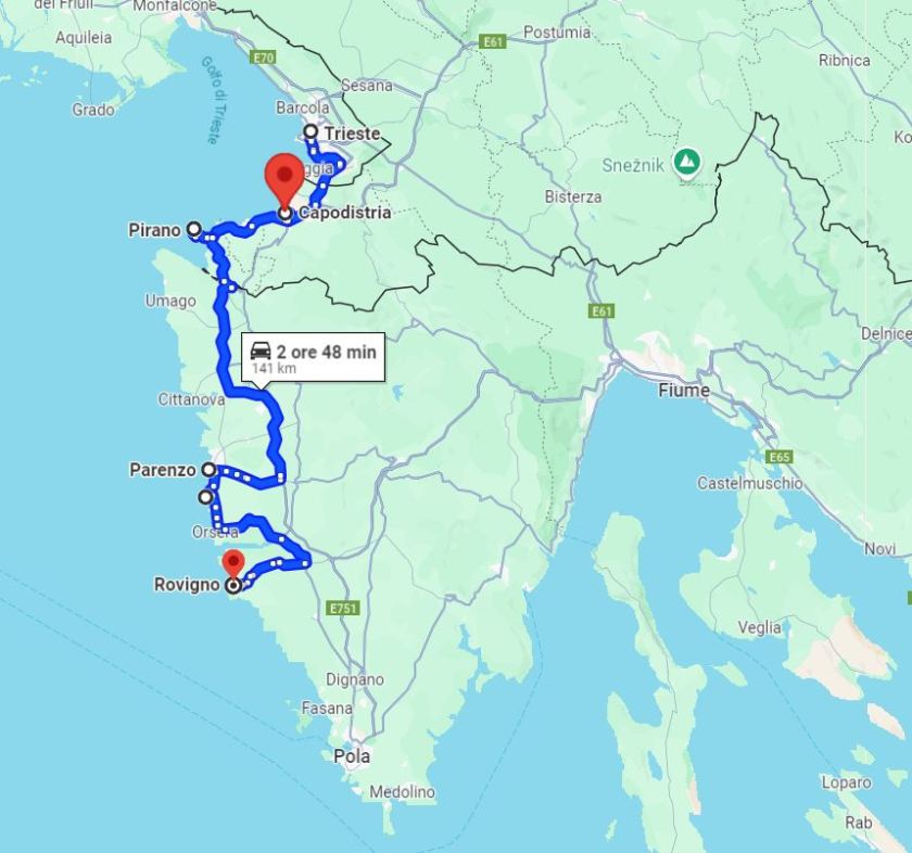 Raggiungendo la Croazia in automobile, oltre il confine a Trieste, si attraversa per un breve tratto il territorio Sloveno che merita una sosta a Capodistria, in Sloveno Koper, ma anche a Porto Rose – Portorož, oppure a Pirano – Piran.