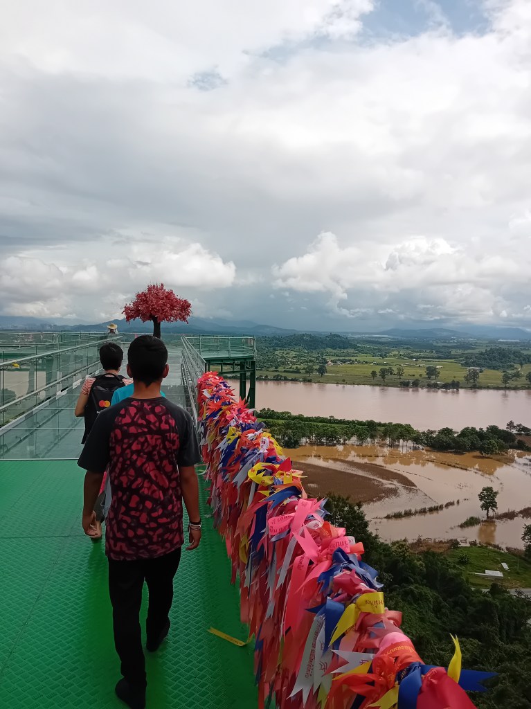 Altra visita consigliata è la regione denominata “triangolo d’oro” situata sulle spone del fiume Mekong che fa da confine tra Thailandia a sud, Myanmar ad ovest e Laos ad est. Tradizionalmente conosciuta per la produzione di oppio, questa zona si è adattata ai flussi turistici ed ha convertito alcune delle piantagioni alla coltivazione di Te. Molto suggestiva è la vista dallo sky-walk, una passerella in vetro posta a diversi metri di altezza sul crinale della collina che domina il fiume. Per accedervi attraverserete un monastero costituito da numerosi templi e dove con pochi bath potrete acquistare nastri colorati su cui verranno scritte le vostre preghiere, in modo da poterle annodare ed affidare al vento che batte costantemente la passerella.
